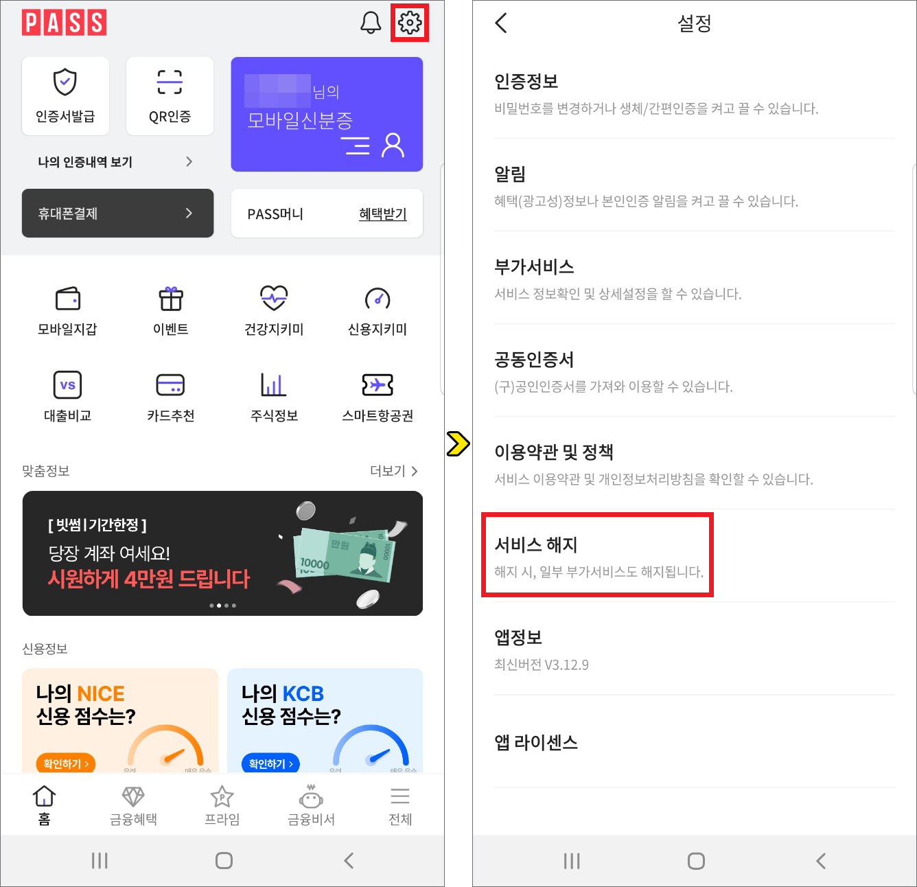 패스 서비스 해지를 하게 되면 인증내역, 등록되어 있는 금융정보가 모두 삭제되며, 서비스 탈퇴 시 계정도 삭제되고 개인 정보도 모두 파기되어 복구할 수 없게 된다는 점을 알고 계시면 될 거예요.(관계법령에 따라 보관해야 되는 정보는 일정기간 보관됨)