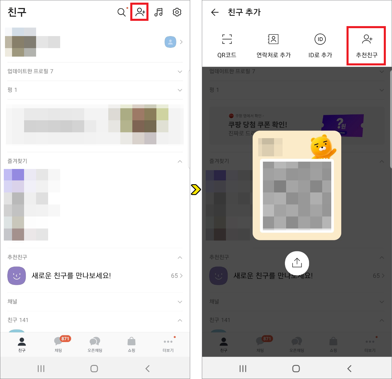 필자의 경우 폰에 전화번호가 등록되어 있지 않은 친구를 추천친구에서 찾을 수 있어 반가웠는데 확인해 보는 방법은 간단합니다.