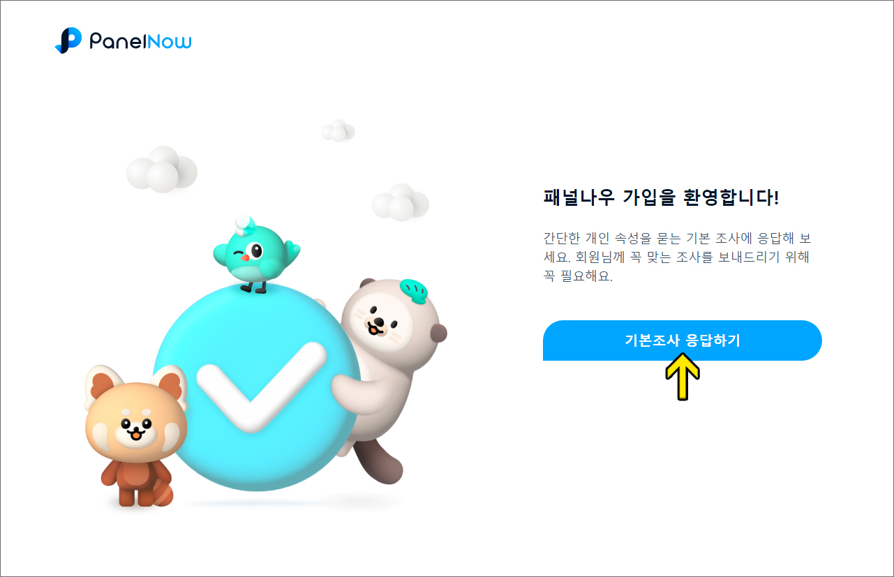 이제 본격적으로 온라인 설문조사 사이트인 패널나우를 이용해서 돈을 벌 수 있는데 [기본조사 응답하기] 버튼을 눌러보세요.
