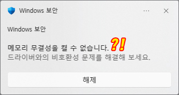 메모리 무결성 기능을 켜보려고 했으나 드라이버 호환성 확인 도중에 메모리 무결성을 켤 수 없으니 드라이버와의 비호환성 문제를 해결하라고 나와서 난감해진 분들도 있을 텐데요.