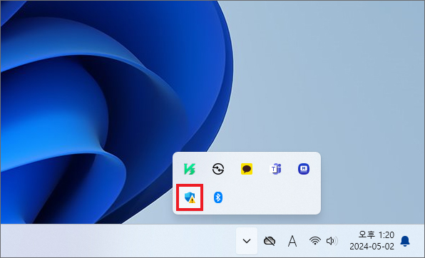 설정은 간단한데 PC 화면 우측 하단에 있는 ^ 표시를 클릭한 다음 시스템 트레이에서 Windows 보안 아이콘을 더블클릭하세요.