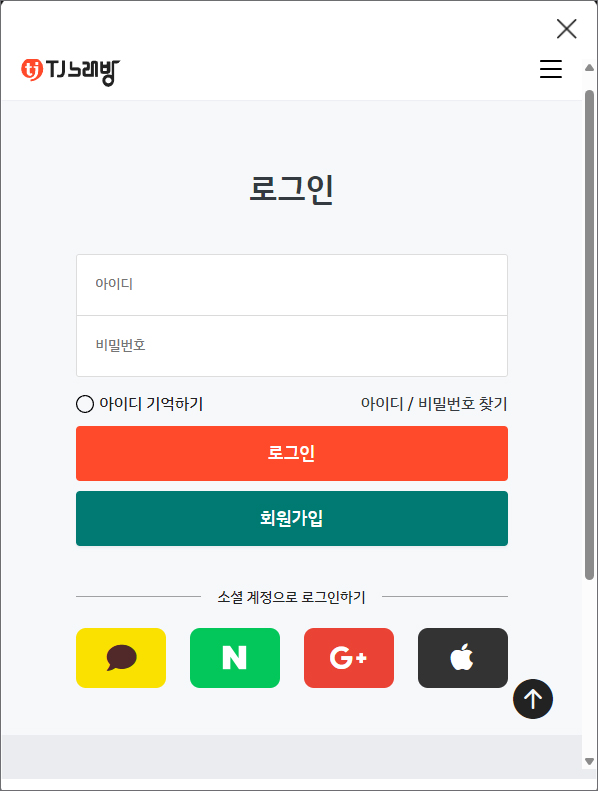 가능한 접속 방식을 선택해서 회원가입을 해주시면 되겠고 로그인 후 우측 상단에 이용권 표시를 클릭해서 이용권을 구매한 다음 부르고 싶은 곡을 찾아보시면 되는데요.
