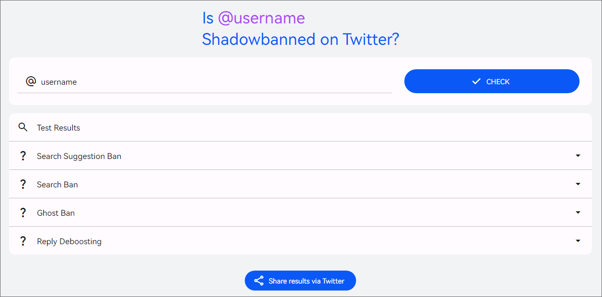 또 다른 방법은 트위터 쉐도우밴 상태인지 확인할 수 있는 Twitter Shadowban Test 사이트가 있는데 포털 사이트에서 검색하면 나오지만 편하게 이동하고 싶으신 분들을 위해서 밑에 버튼을 만들어놓겠습니다.