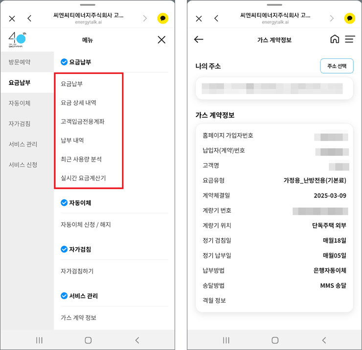에너지, 도시가스, 집단에너지, GHP, CNG, 안전점검, 요금조회, 전출입신청